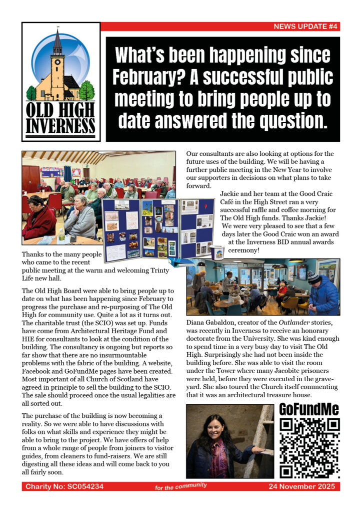 The Old High Inverness board made an offer to buy the building from the Church of Scotland and our ‘Heads of Terms’ were accepted. So thanks to everyone involved, we have made a big step forward.